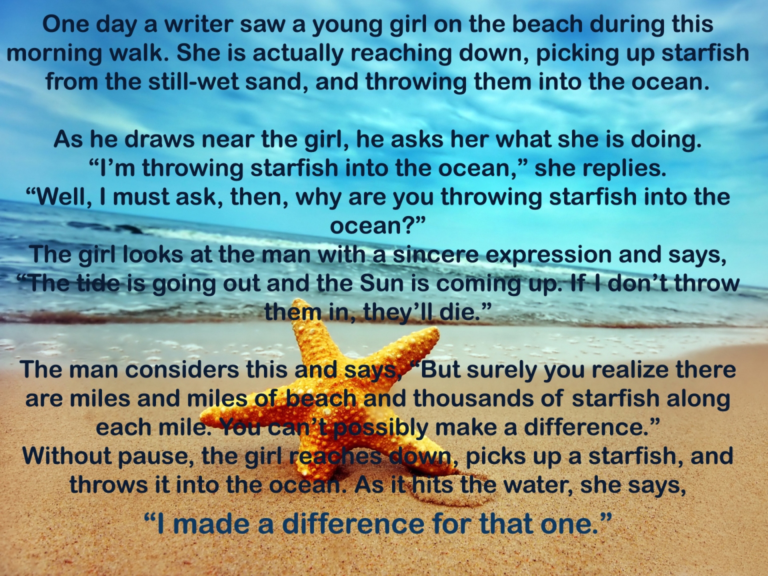 If you are still not confident that a small contribution can make a difference I would like to share something with you.