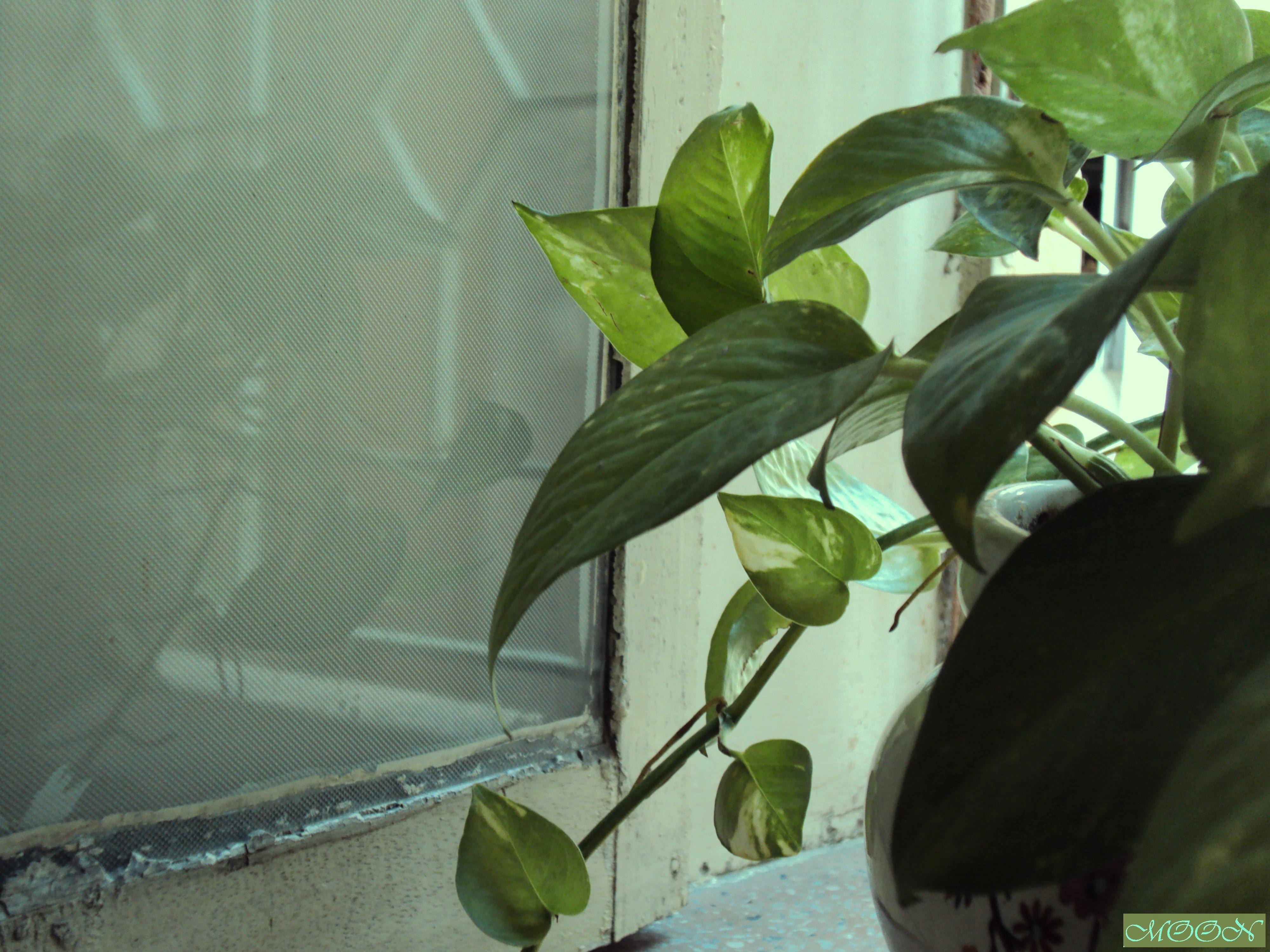 It was a lazy Saturday afternoon. The sun was little mute outside because of the thick white clouds that were crossing its path often throughout the day. The sky was pale blue. The towering palms in our neighbor’s backyard were swaying there heads in cool breeze. The pussy cat was dozing on the window shade. My eyes were getting heavy and I thought of having a siesta. I went into my room and was about to close the window that this ‘money plant’ caught my eyes. It was looking beautiful green in faded sunlight. And I couldn’t but tried some shots with my digi-cam.